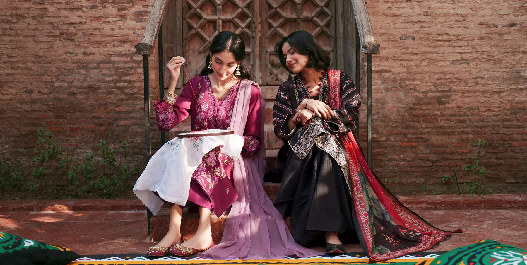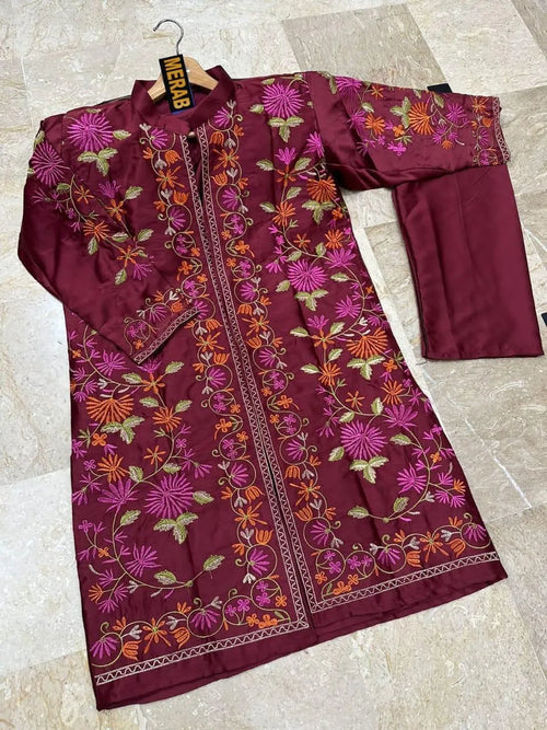 Maroon Embroidered Women's Gown & Trouser Set