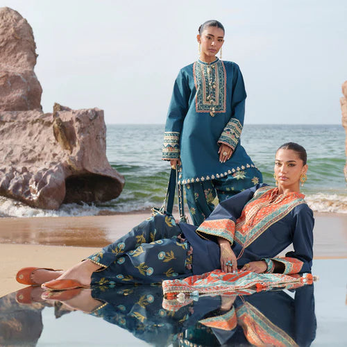 Blue Embroidered 4-Piece Shamoz Silk Suit for Women
